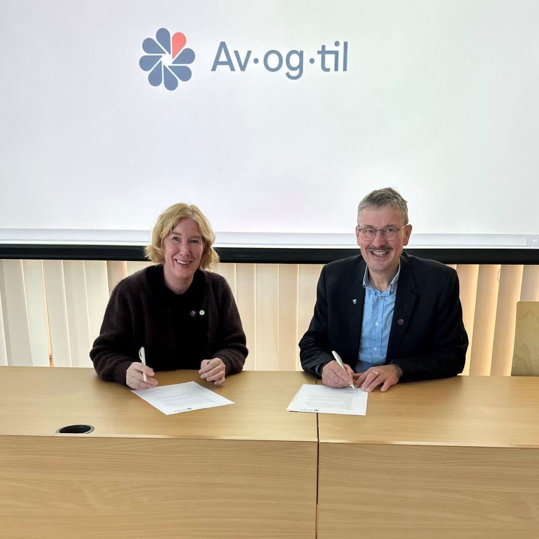 Avtalen vart signert av Marte Sletten frå Av-og-til og ordførar Vebjørn Krogsæter
